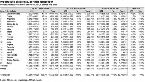 Seguem outras curiosidades que encontrei no banco de dados de comércio exterior do governo.