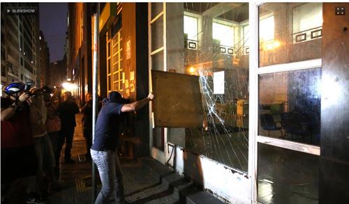 Em Porto Alegre, os manifestantes picharam a sede do PT com a expressão “Dilma=Maduro”. Por aí se vê de que lado eles estão.