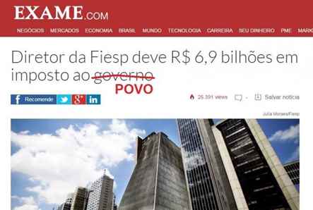 Caneta Desmanipuladora corrige manchete da Exame sobre diretor da Fiesp que deve R$ 6,9 bilhões em impostos ao governo (Foto: Reprodução/ Exame)