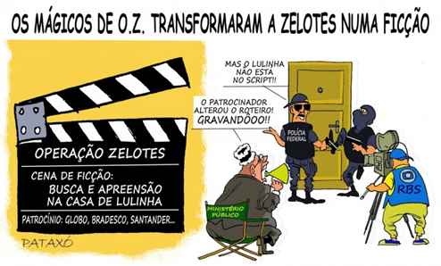 Mídia faz mágica no Brasil. Transforma uma operação de combate a sonegação de impostos numa investigação sobre Lula e sua família (Charge: Pataxó)