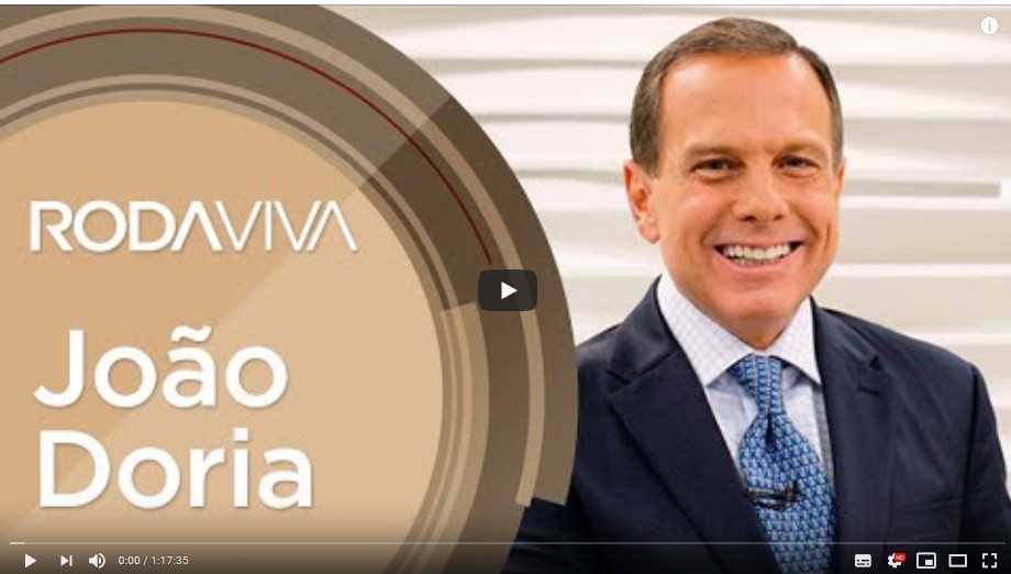 O governador de São Paulo, João Dória, foi o entrevistado desta semana no programa Roda Viva.