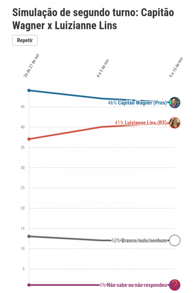 E nesse sentido, a candidatura de Wagner têm seguido uma trajetória de crescimento no índice de rejeição, desde o início da campanha, quando lhe foi atribuído a liderança e o envolvimento, de fato, no motim da Polícia Militar do Ceará em Fevereiro deste ano. O candidato do Pros também viu sua rejeição aumentar, com mais força, quando o apoio do presidente Jair Bolsonaro foi tornado público.