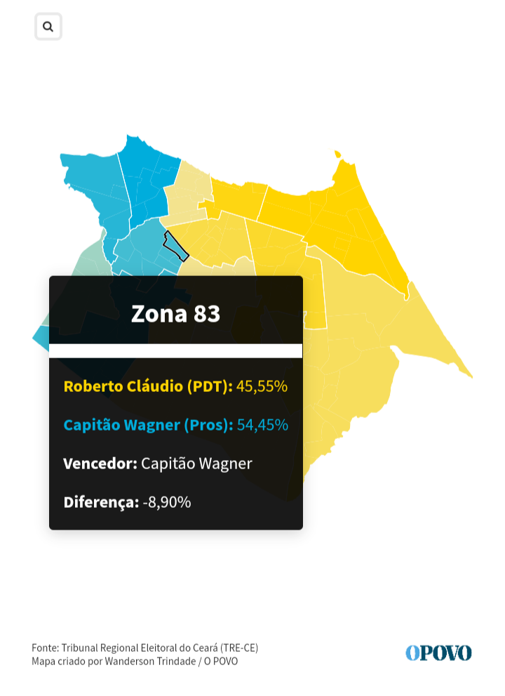 Porém, o candidato do PROS que foi apoiado pelo presidente Jair Bolsonaro saiu na frente em cinco zonas eleitorais, todas situadas na Zona Oeste de Fortaleza. Desse total, Wagner recebeu mais votos que Sarto em duas zonas – 083 e 114 – onde o PT saiu vitorioso em eleições anteriores.