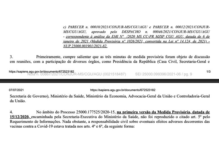 Alguns emails enviados pelo secretário-executivo adjunto do Ministério da Economia, Miguel Ragone de Mattos, revelam que tanto ele quanto o ministro estavam cientes das discussões das minutas da MP (Medida Provisória) das vacinas. Porém, o braço direito de Guedes afirmou à CPI que o ministério tratou do assunto na fase de sanção.
