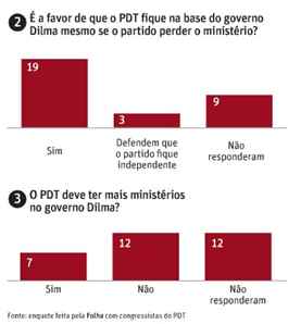 A Folha publicou matéria com pesquisa sobre os pedetistas contrários à permanência de Lupi no ministério. O texto reflete, no entanto, mais as disputas internas do partido do que alguma indignação real contra eventuais “malfeitos” do ministro. E como Dilma, segundo a mesma imprensa divulgou na véspera, já identificou a existência dessas disputas e não quer atiçá-las ou fazer delas motivo para sangrar seu próprio governo, elas também não constituem uma ameaça à sobrevivência de Lupi à frente da pasta. Vale anotar, todavia, essa nova estratégia para enfraquecer um ministro: açular o apetite de seus possíveis substitutos pela vaga.