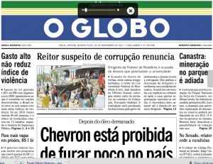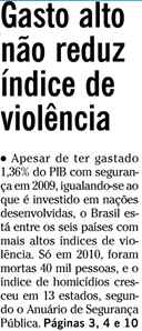 O Globo dedicou seu espaço mais nobre, a página 3 inteira, a uma matéria com dados do recém divulgado Anuário Brasileiro de Segurança Pública 2011. E com chamada na capa.