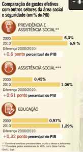 O Globo publica ainda outro infográfico, mas não o usa para mudar o sentido geral de sua matéria. Confira que, mesmo usando percentual do PIB, os gastos ditos sociais aumentaram sensivelmente de 2000 para 2010.