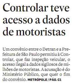 Não é nada que a “imprensa livre” descobriu por si só. Simplesmente informa, como um bom jornal, que o Ministério Público acusa a prefeitura de violar o sigilo de milhões de motoristas paulistanos.