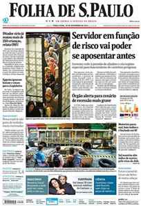 Ao olhar para essas capas, senti-me num domingo. Folha e Globo parecem ter tirado alguns dias sabáticos para a política nacional. O caso da Folha é constrangedor. Deu manchete ao escândalo Controlar há poucos dias, ontem publicou uma matéria escondida no caderno Cotidiano e hoje… nada. Silêncio sepulcral. Na verdade, a Lo Prete publicou três notinhas mixurucas e sem nada novo sobre o escândalo em si: uma dá espaço para o promotor que abafou o escândalo por seis meses em troca de uma sinecura balbuciar uma desculpa esfarrapada; a outra diz que os vereadores do PT vão tentar uma CPI e a terceira relata o piti do presidente da SPTuris, Caio Luiz Carvalho, quando um jornalista mencionou o escândalo.
