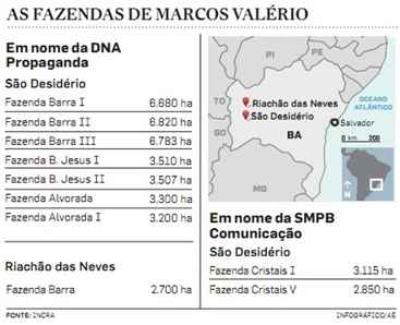 Por fim, publico um quadrinho do Estadão, com informações sobre as fazendas “do mensalão” (achei a expressão engraçada).