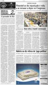 O Globo, porém, amanheceu com a pretensão de ignorar solenemente o tema e pautar à sua maneira a agenda política. Conseguiu, de fato, aplicar um golpe em Pimentel. O presidente da Fiemg, Robson Andrade, falara que Pimentel dera palestras nas regionais, mas o ministro não o fez. Foi um equívoco de Andrade, não do ministro, mas já foi o bastante para gerar duas páginas negativas na edição de hoje, além de uma chamada na capa, no hemisfério superior, ao lado das manchetes.