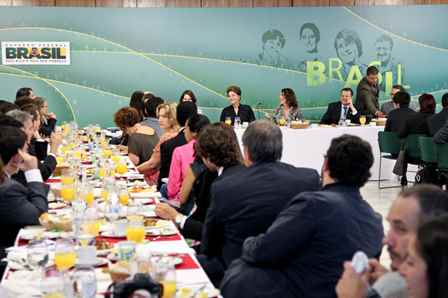 Foto da conversa de Dilma com jornalistas, ontem.