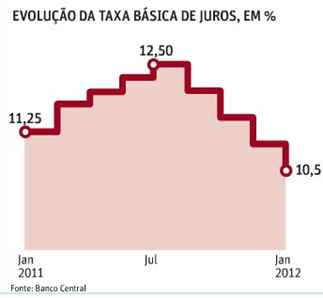 Na primeira reunião do ano, o Copom (Comitê de Política Monetária) cortou a taxa para 10,5% ao ano. Essa foi a quarta redução consecutiva desde agosto de 2011.