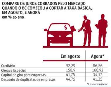 Segundo a Anefac (Associação Nacional dos Executivos de Finanças), desde agosto a taxa recuou em algumas modalidades, como resultado do corte de juros e outras medidas de estímulo. Mas o cheque especial, por exemplo, subiu devido à alta da inadimplência.