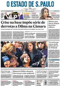 Estadão e Folha deitam e rolam em cima da crise de relação entre o Planalto e o Congresso. A Folha traz ainda, na capa, nota com declaração (link só para assinantes do Cafezinho) dura do ex-ministro da Cultura, Juca Ferreira, sobre sua substituta na pasta.