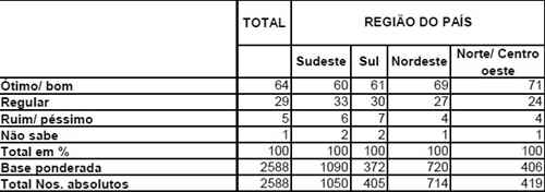 A opinião sobre o desempenho pessoal da presidente mostra o mesmo padrão: