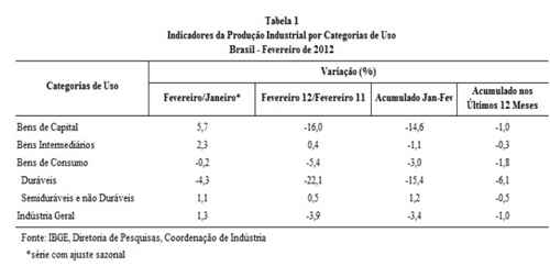 Observe ainda que o setor de bens de consumo duráveis, que tem maior valor agregado e usam mais tecnologia, registraram uma forte alta de março, de 3,4%, contra uma queda de 4,3% em fevereiro, considerando sempre o mês anterior.