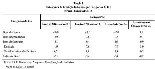 O IBGE divulgou hoje os dados da produção industrial, que registrou queda de 0,5% em março sobre o mês anterior. Na comparação com o mesmo mês do ano anterior, a queda foi de 2,1%. Em fevereiro, apesar da alta de 1,3% sobre janeiro, a queda sobre o ano anterior havia sido de 3,9%.