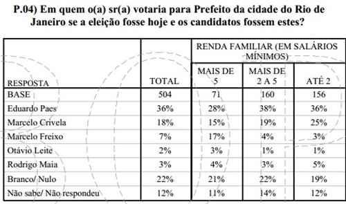 A última pesquisa Ibope, divulgada em janeiro, apontava o seguinte quadro para a sucessão de Eduardo Paes (PMDB) à prefeitura do Rio de Janeiro: