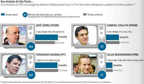 A Folha preparou um gráfico com a mudança no tempo de TV dos candidatos na eleição paulistana, onde vai rolar o principal “clássico” deste ano: