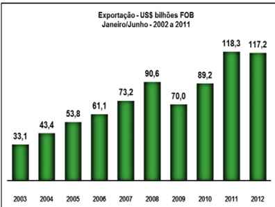 Observe que a exportação de aviões cresceu 40% em 2012, atingindo US$ 2,06 bilhões em Jan/Jun 2012.