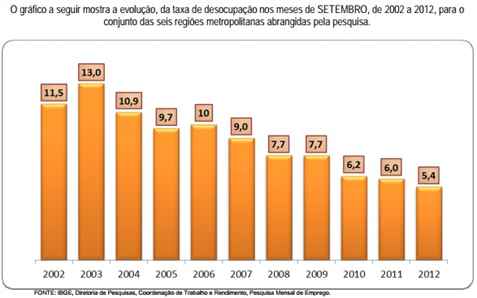 Repare que o desemprego atingiu, em setembro de 2012, o menor índice, para este mesmo mês, da série histórica desde 2002.