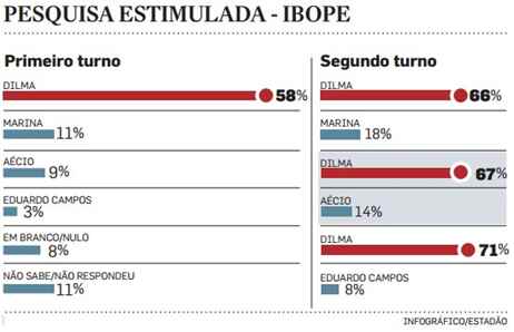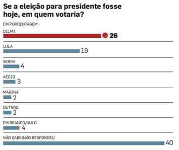 O Estadão publicou neste final de semana uma pesquisa Ibope com as primeiras sondagens eleitorais para 2014. Não há muita surpresa. Dilma pontifica, apolínea, num distante primeiro lugar, ao lado de Lula. Os jornais destacaram a ultrapassagem da presidente sobre o ex, mas isso é normal, em função da preponderância absoluta de Dilma na mídia sobre seu antecessor, e também pela defesa explícita de Lula de que seja dada à atual ocupante do cargo a chance de tentar a reeleição.