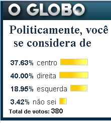 Não apenas neurastênicas. Cooptadas ideologicamente. O blog do Noblat publicou esta semana o resultado de uma enquete que realizou entre seus leitores sobre como se identificavam politicamente.