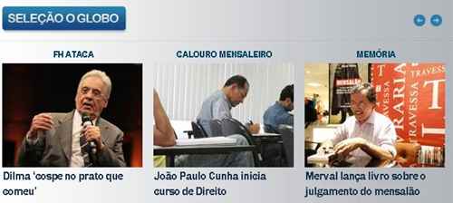 Qual o interesse em informar que João Paulo Cunha iniciou um curso de Direito? Aí a gente vê, na sequência: uma foto de FHC em pose “combativa”; o calouro mensaleiro; e o campeão máximo da mídia, Merval Pereira, autografando seu livro em lançamento ocorrido anteontem.
