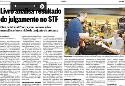Hoje, no Globo, uma página inteira sobre o lançamento do livro de Merval, cujo significado político ficou evidenciado pela presença de José Serra.