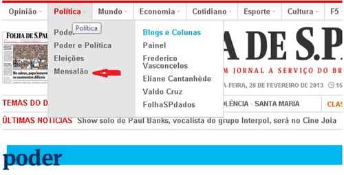 No site da Folha, há anos se mantém uma aba chamada Mensalão, alçado à condição de uma “categoria”, a mesma de Poder e Eleições. Como se fosse uma editoria própria. E deve ser mesmo, ou antes uma editoria da qual todos os jornalistas do grupo participam e para a qual colaboram.