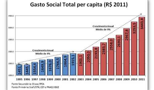 Esses dois gráficos, publicados num post do Nassif, me impressionaram bastante. A impressão é maior quando você olha os dois ao mesmo tempo. O que eles significam? O que significa manter estagnados gastos sociais per capita e aumentar exponencialmente a dívida do setor público num momento em que os nossos juros atingiam um recorde mundial? Não seria isso uma transferência brutal de renda dos mais pobres para os mais ricos?
