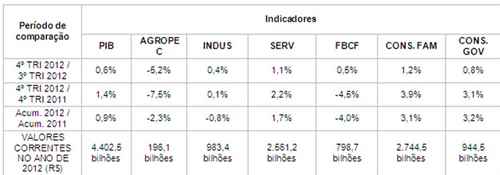 Observe a tabela abaixo e atente para a coluna do quarto trimestre. Todos os itens apresentam números bastante positivos, com exceção da agropecuária.