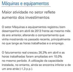 Destaco o crescimento de 26% no faturamento do setor de máquinas e equipamentos, na comparação com o mês anterior.