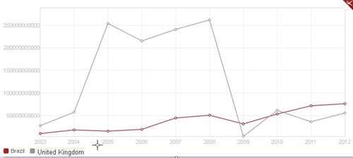 Investimento Estrangeiro Direto – Gráfico Comparativo – Reino Unido e Brasil
