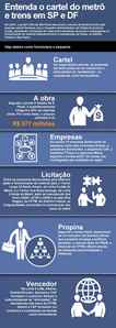 As duas empresas citadas pelo promotor são a Alstom e a Siemens, mas a participação de agentes públicos também é considerada. Milani explicou que, nos depoimentos, um ex-diretor da Siemens trouxe ao MP cópia de um e-mail enviado por um funcionário do Metrô convocando representantes das duas empresas a uma reunião na qual teriam sido convidadas a fazer um consórcio. Para o encontro, foram chamados os diretores de transporte das duas empresas.