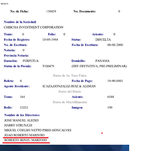 Já que a Globo, por causa do hotel onde Dirceu irá trabalhar, está tão interessada nas empresas do Panamá, seria bom aproveitar a viagem e explicar ao distinto público porque os irmãos Marinho figuraram como diretores de uma firma naquele país. Trata-se da Chibcha Investment Corporation, presidida por José Manuel Aleixo.