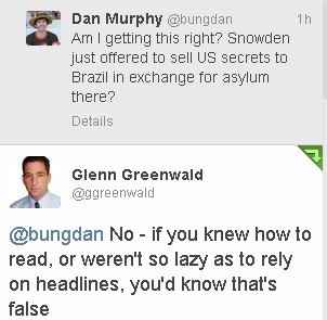 [Tradução –> Dan Murphy: Estou entendendo direito? Snowden acaba de oferecer segredos norte-americanos ao Brasil em troca de asilo por lá?