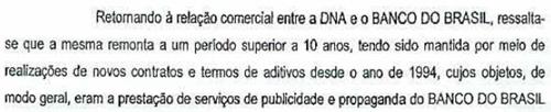 Mas Valério nunca desviaria a totalidade dos recursos de uma campanha publicitária. A DNA era uma agência genuína, que mantinha contratos com o Banco do Brasil desde 1994. Está lá na página 39: