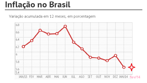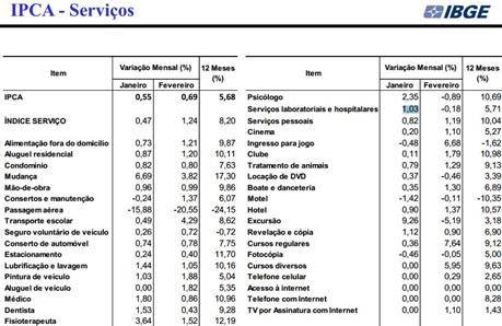 A inflação de fevereiro ficou em 0,69%, contra 0,55% em janeiro. No acumulado 12 meses, ela subiu de 5,59% para 5,68%, ainda o segundo menor patamar em mais de 13 meses, só abaixo de janeiro deste ano.