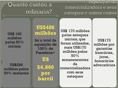 A mídia está distorcendo, por exemplo, os custos da refinaria de Pasadena, porque está incluindo no preço os estoques de petróleo e derivados que vieram juntos na compra, e que foram usados.