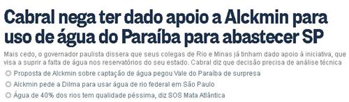 Sérgio Cabral não é flor que se cheire, mas não é um sociopata barbosiano que irá negar água, por pura maldade, ao povo de São Paulo. Se ele se nega a entregar o rio Paraíba do Sul ao governo de São Paulo é porque isso poderia comprometer o abastecimento no interior fluminense. Aí teríamos um abraço de afogados, ou melhor, de sedentos. A incompetência tucana arrastaria dois estados, São Paulo e Rio de Janeiro.