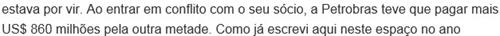 Ou seja, na questão dos preços, consultorias independentes e a opinião de executivos e empresários respeitados no mundo dos negócios, afirmavam que se tratava de um excelente negócio para a Petrobrás. Isso deve calar a boca de muita gente.