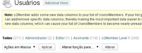 Eu tenho atualmente 249 assinantes pagantes. Observe a imagem abaixo. Os assinantes pagantes são os inscritos no tipo “S2Member Level 1”, que é o software que eu uso para controlar as assinaturas.