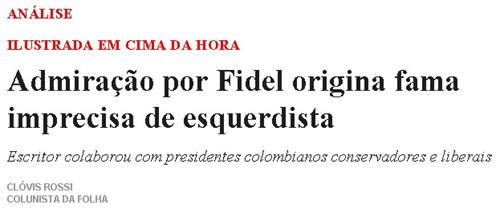 Clovis Rossi, em “análise” para a Folha sobre Garcia Marquez, faz um servicinho mais que sujo: é antes pueril, desnecessário e incoerente. Observe o título e, sobretudo, o subtítulo, de seu texto: