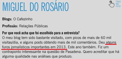 Minha resposta: “[o blog] deu alguns furos jornalísticos importantes em 2013. Foi o mais perto que o Globo chegou, até o momento, de informar a seus leitores sobre a fraude fiscal que protagonizou em 2002.
