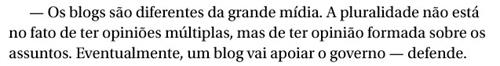 PS: Agora que eu vi que a repórter botou “relações públicas” como minha profissão. Prezada repórter, eu sou jornalista, segundo o Ministério do Trabalho, ou blogueiro, segundo outros parâmetros. Tenho maior respeito pela profissão de RP, mas sou apenas formado nisso, não é minha profissão.