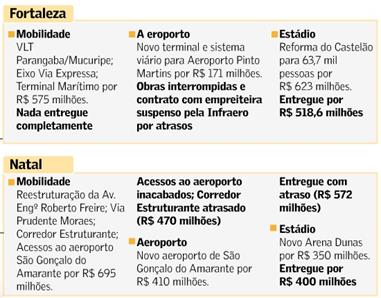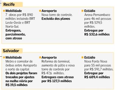 Abaixo, infográficos com uma relação das obras feitas em cada cidade-sede.