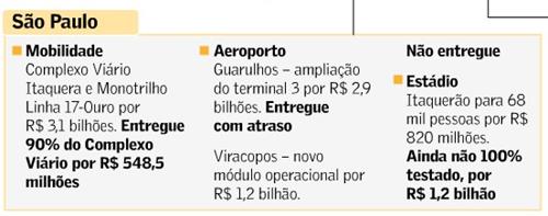 O Valor de hoje publica uma página inteira sobre a Copa, com texto de João José Oliveira. É um bom artigo, que traz especialistas em obras admitindo que foram cometidos erros de planejamento, mas todos entendem que haverá um grande legado.