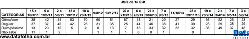 Em abril de 2012, 70% das famílias com renda superior a 10 salários consideravam o governo Dilma “bom ou ótimo”; apenas 2% consideravam-no “ruim ou péssimo”. Hoje, 48% acham seu governo ruim e apenas 23% gostam dele.